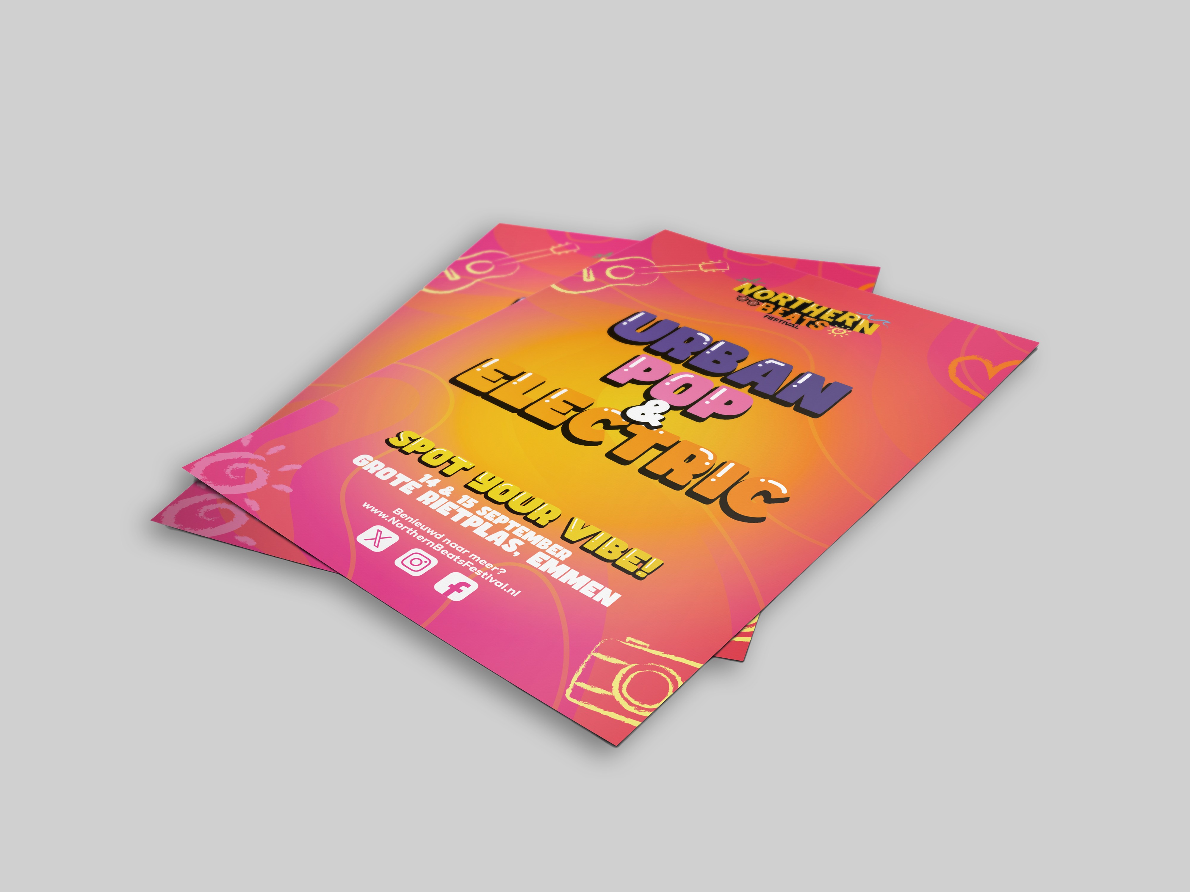 Voor een schoolopdracht ontwierp ik de huisstijl van Northern Beats Festival, een fictief muziekfestival dat draait om muziek, vriendschap en natuur. Het festival speelt zich